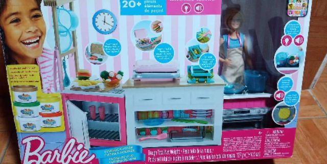 You can prepare a sandwich with fries, some veggies and bake a delicious cake with the brand new barbie® dough! Buy the barbie ultimate kitchen & delve into the world of chef barbie & all of her amazing dishes barbie's ultimate kitchen was perfect for my little girl. Barbie® kitchen playset with doll, lights & sounds, food molds, 5 dough colors and 20+ barbie® doll helps young food lovers cook up fun with the ultimate kitchen playset featuring lights and. Join us on a cooking adventure with barbie® ultimate kitchen! Barbie doll house furniture kitchen island bar stove stools playset for dolls.